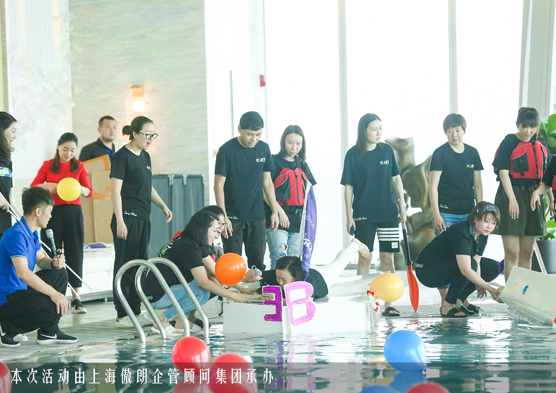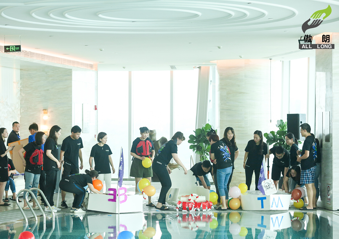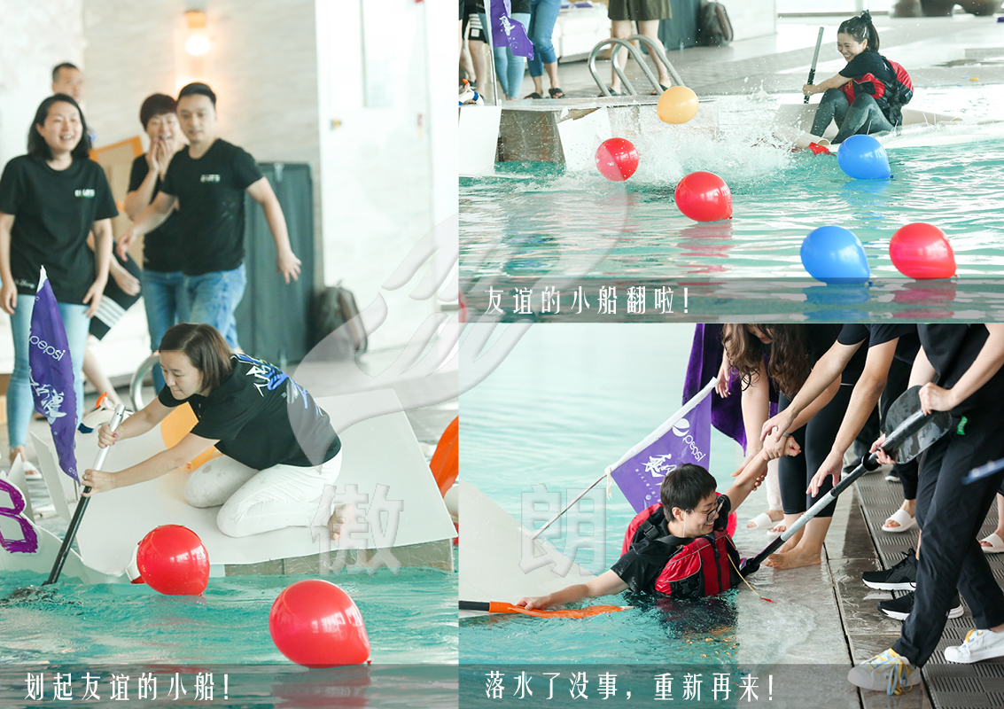 2020年9月,百事的伙伴們開展了“乘風破浪定乾坤”為主題的團建活動,包場酒店室內泳池,用pvc管,塑料瓶,保鮮膜,紙板等,自己動手制造巨艦,在泳池碧波里進行劃船競速比賽
