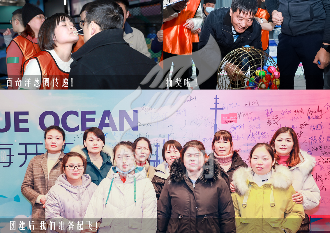 2020年12月,玫瑰塑膠的伙伴們?cè)诶ド教m博基尼酒店開(kāi)展了以“藍(lán)海開(kāi)拓”為主題的年會(huì)團(tuán)建活動(dòng),以公司的形象和產(chǎn)品為要素,現(xiàn)場(chǎng)搭建兩艘紅海和藍(lán)海的大船,描繪上公司的理念和產(chǎn)品等,寄予新一年美好的期望。
