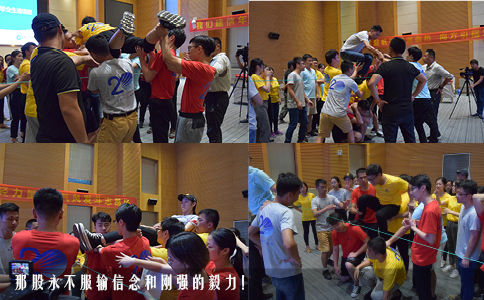 如果這些都是暴風(fēng)雨來臨的前奏,那我想最終的考驗(yàn)一定無比艱難。這次的要求比之前的都苛刻,難度也很大,只要犯一點(diǎn)錯(cuò)誤就要重新來過,而全部的壓力都擔(dān)在了為數(shù)不多的男生身上,一次、兩次、三次等等,多次的失敗耗盡了男生大量的體力,汗水已經(jīng)浸濕了衣衫,希望和絕望在不斷交錯(cuò)打擊著我們的信心,這時(shí)支撐我們的到底是什么?沒錯(cuò)!是那股永不服輸信念,那股剛強(qiáng)的毅力。當(dāng)最后一個(gè)人縱身一躍,一切付出都值得了。那些滑坡的手腕、拉傷的肌肉,被踩到淤青肩膀,都是頒發(fā)給我們的勛章。