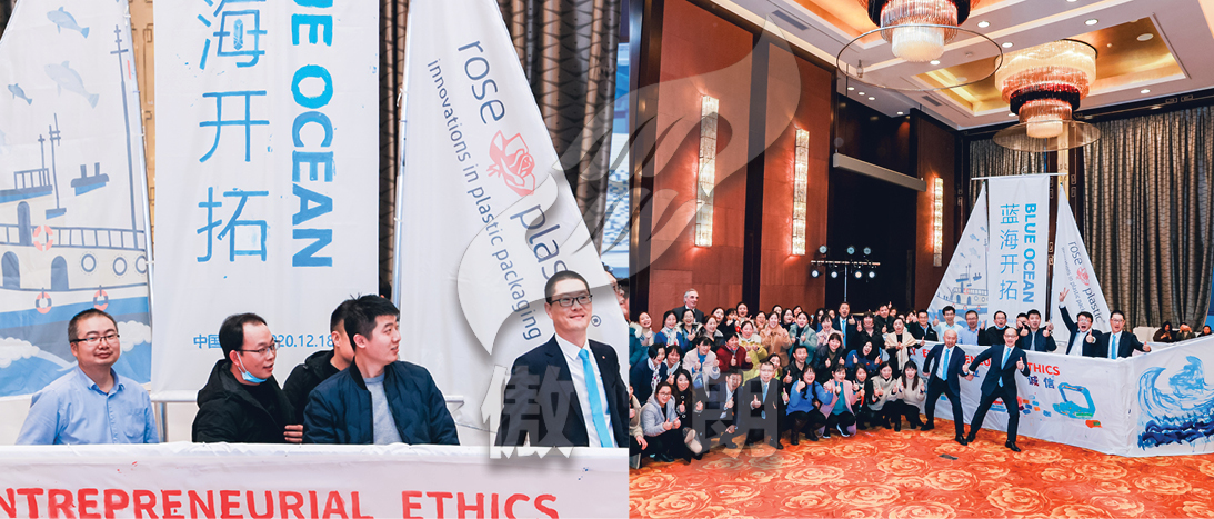 2020年12月,玫瑰塑膠的伙伴們在昆山蘭博基尼酒店開展了以“藍海開拓”為主題的年會團建活動。