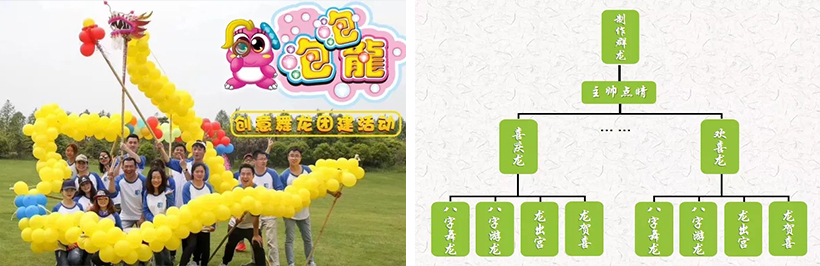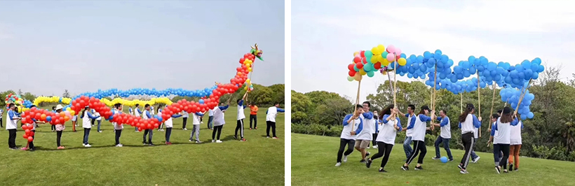 我們要用自己的雙手,用五顏六色的氣球制作出我們自己的心目中最完美且創(chuàng)意爆棚的泡泡龍,將自己的團(tuán)隊(duì)文化、企業(yè)文化的精髓融入的設(shè)計(jì)理念,制作一條泡泡龍,并以此龍參加最后的舞龍比賽。