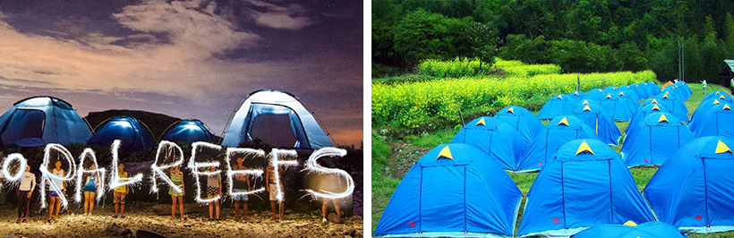 【項目介紹:野外露營】草坪上一個個五彩斑斕的小帳篷整齊的搭建起來,與天空為友,與大地作伴。晚上還可以自己做飯,和舉辦一場篝火晚會。